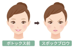 この眉間ボトックスによくある失敗として、施術後に眉尻部分がつり上がる「スポックブロウ」と呼ばれる状態になることがあります。