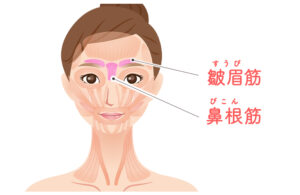 眉間のシワは、皺眉筋と鼻根筋という2つの筋肉の境目が織り込まれることでできてしまうケースが多いため、そこにボトックス注射を行うことで改善が見込めます。