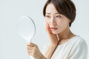 しかし「筋肉が痩せる」ということは、その分「皮膚が余る」ことを意味します。肌にハリのある人であればそれほど気になりませんが、もともと軽度のたるみがみられる人や年配の人に咬筋ボトックスを行うと、一層たるみが強くなったり、頬のコケ感が強調されたりして、年齢以上に老けた印象となることも。