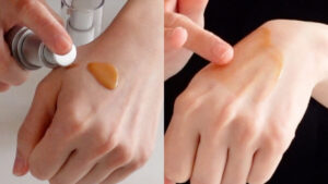 1プッシュを手に取り、顔全体に塗り広げます。